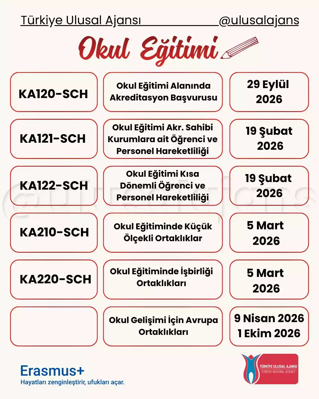 Erasmus+ Ülke Merkezli Projeler başvurularınızı bekliyor, son başvuru tarihlerini kaçırmayın. Başvuru ve gelişmeler için ua.gov.tr ile @ulusalajans sosyal medya hesaplarını takip ediniz.