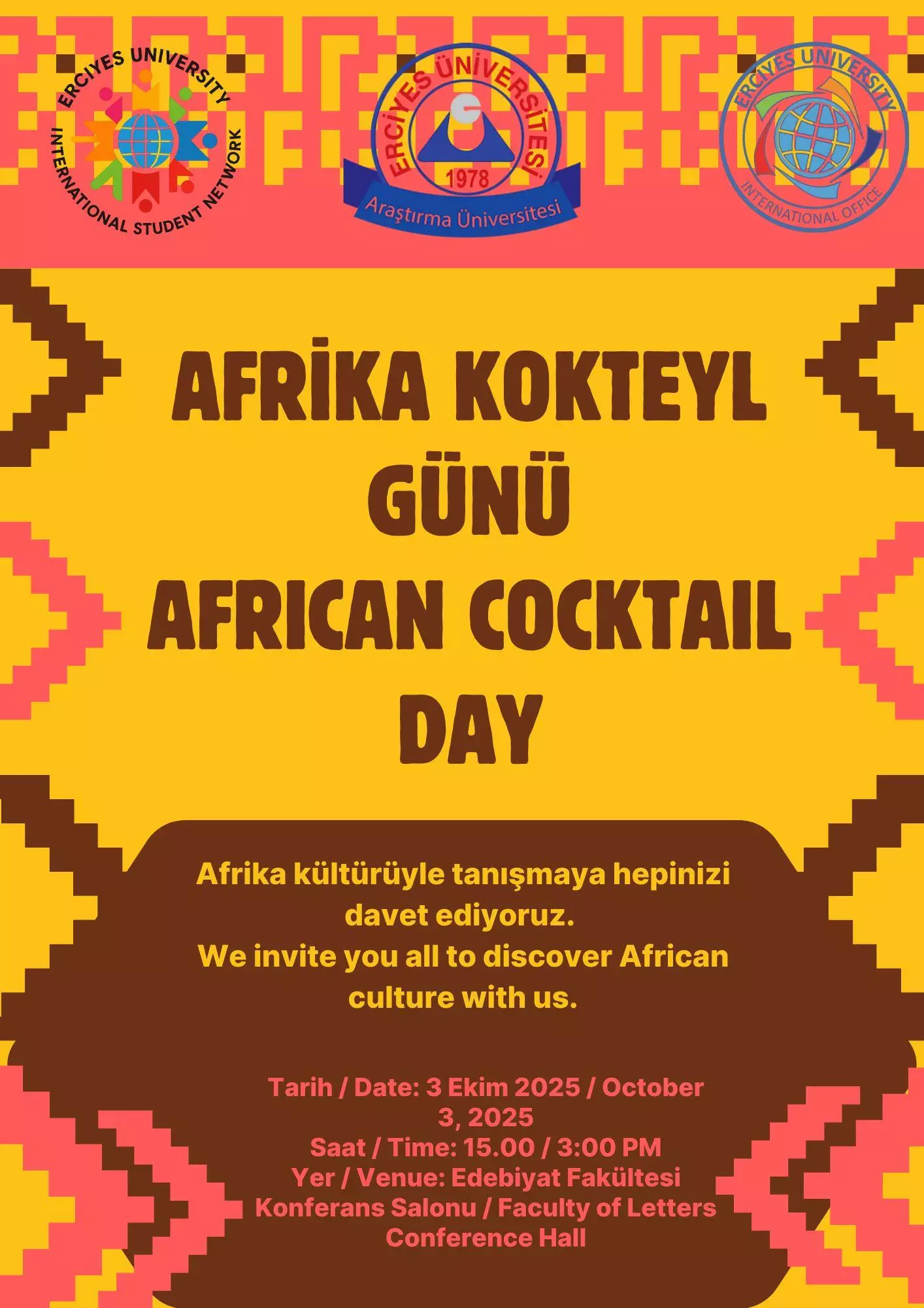 Erciyes Üniversitesi Dış İlişkiler Birimi tarafından düzenlenen Afrika Kokteyl Günü etkinliği, birçok değerli misafirin katılımıyla Edebiyat Fakültesi Konferans Salonu’nda gerçekleştirildi.