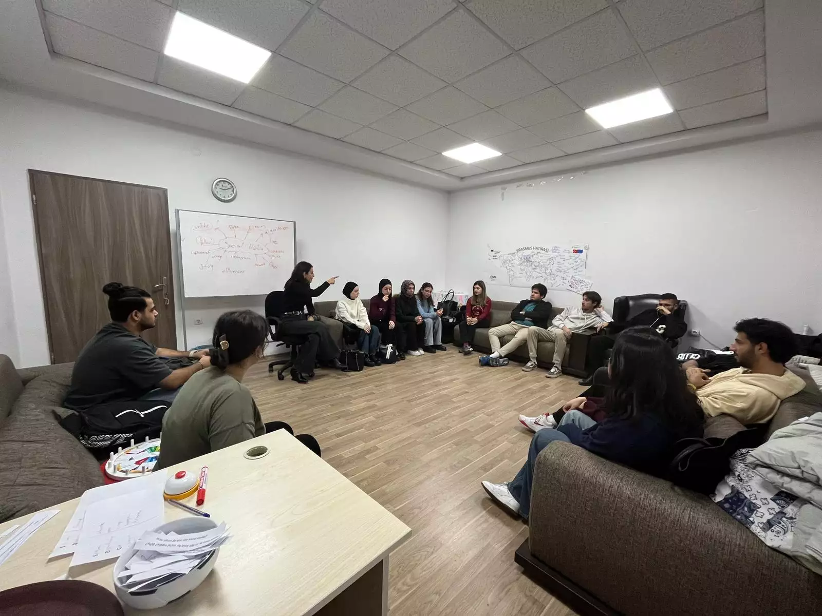Dış İlişkiler Ofisimizde perşembe günleri gerçekleştirilen English Speaking Club etkinliğimiz, bu hafta da uluslararası öğrencilerimiz ve akademisyenlerimizin katılımıyla verimli ve keyifli bir şekilde düzenlendi. Etkinlik kapsamında katılımcılar, etkileşimli aktiviteler aracılığıyla İngilizce pratik yapma ve farklı kültürlerle etkileşim kurma fırsatı buldu.